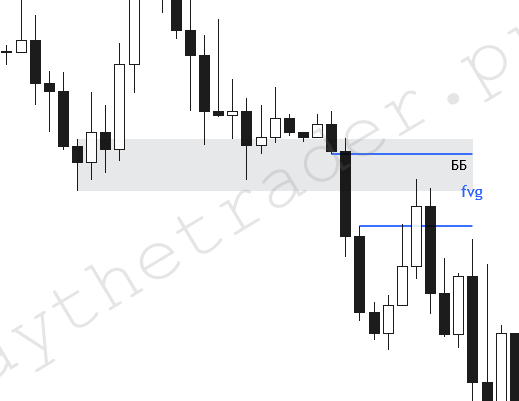 Дополнительным фактором валидности брейкер блока будет наличие имбаланса (fvg) в момент пробития ордер блока.