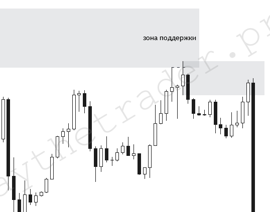 Визуально ордер блок выглядит как импульсно поглощенная бычья или медвежья свеча.