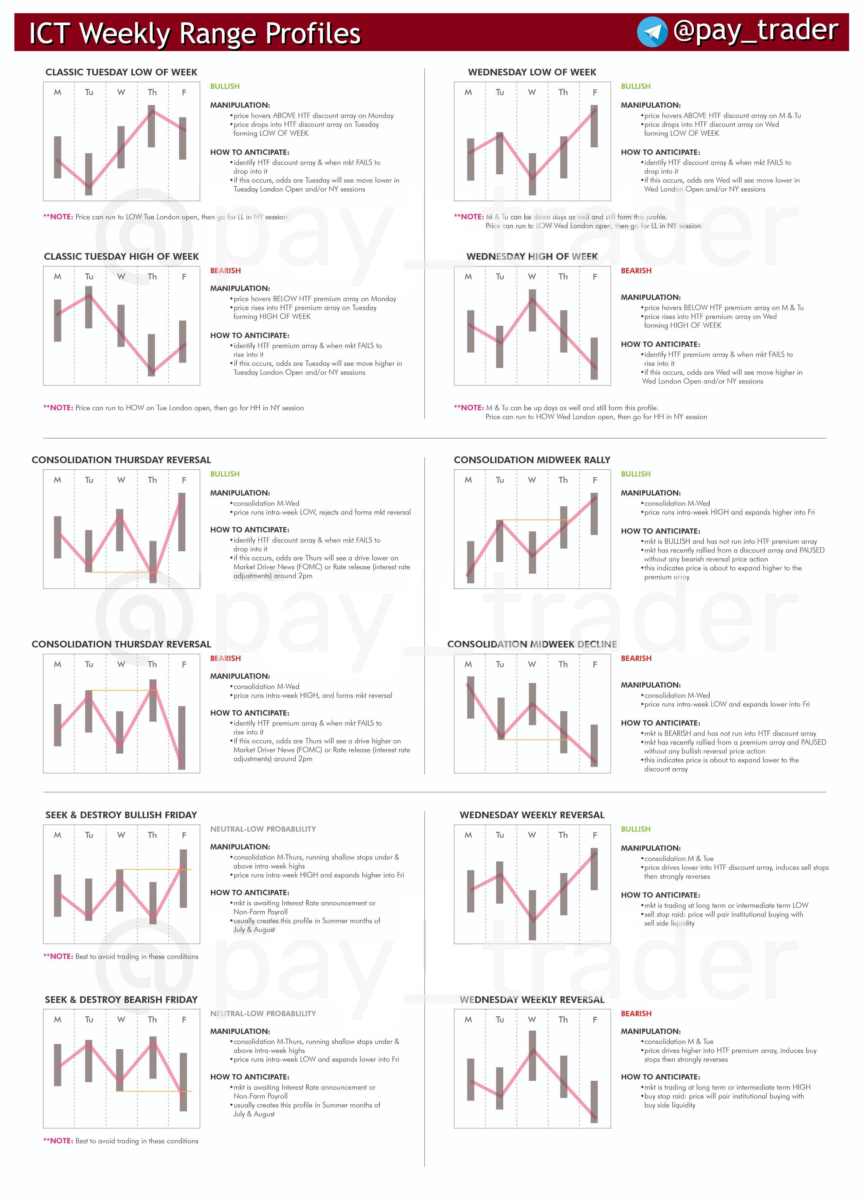 Недельные ICT профайлы для трейдинга 0 StigWan Для полноценного понимания логики движения цены в течении недели, можно воспользоваться следующими профайлами ICT для торговли внутри недельных диапазанов. Скачать в хорошем качестве.