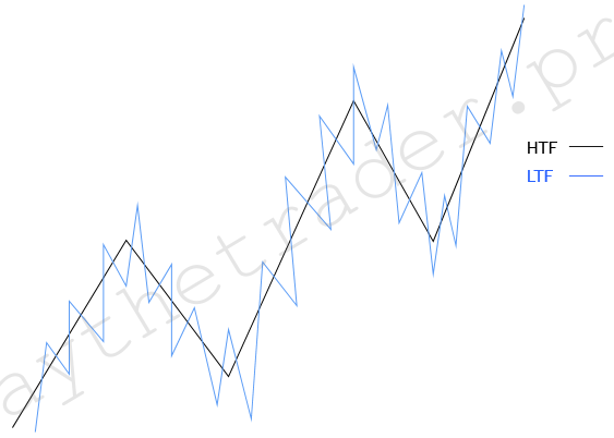 Самые высоковероятные и качественные сделки будут открываться при синхронизации младших таймфреймов (LTF) со старшими (HTF). Старший таймфрейм всегда будет в приоритете.