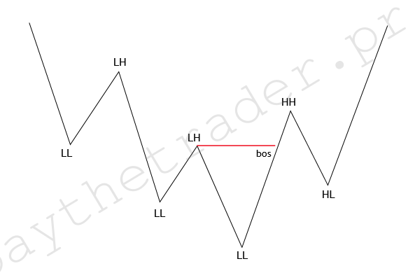 Как только рыночная структура смарт мани обновляет новообразованный LH – происходит слом (bos).