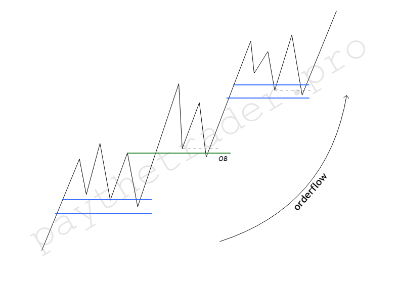 Истинная структура рынка с точки зрения смарт мани формируется с помощью Order flow (потока приказов) – это ордера умного капитала на покупку или продажу, которые доставляют цену. Для нас же доставка цены осуществляется через ордерблоки и имбалансы пока не достигнется зона интереса (poi) старшего таймфрейма либо не будет снята значимая ликвидность. Цена всегда старается ребалансироваться и тестировать ордерблоки по направлению ордерфлоу.