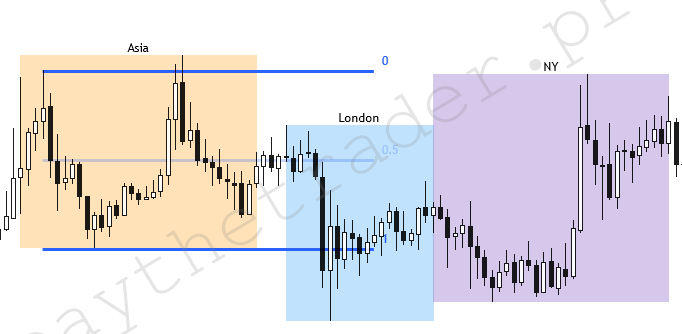 Азиатский ренж используется нами в дальнейшем во время Лондонской сессии. Если ожидается бычий день, то хорошие точки входа по смарт мани будут ниже цены открытия дня и вблизи нижней границы образованного ренжа, можно применить логику амд. Можем увидеть обновление хая предыдущего дня.
