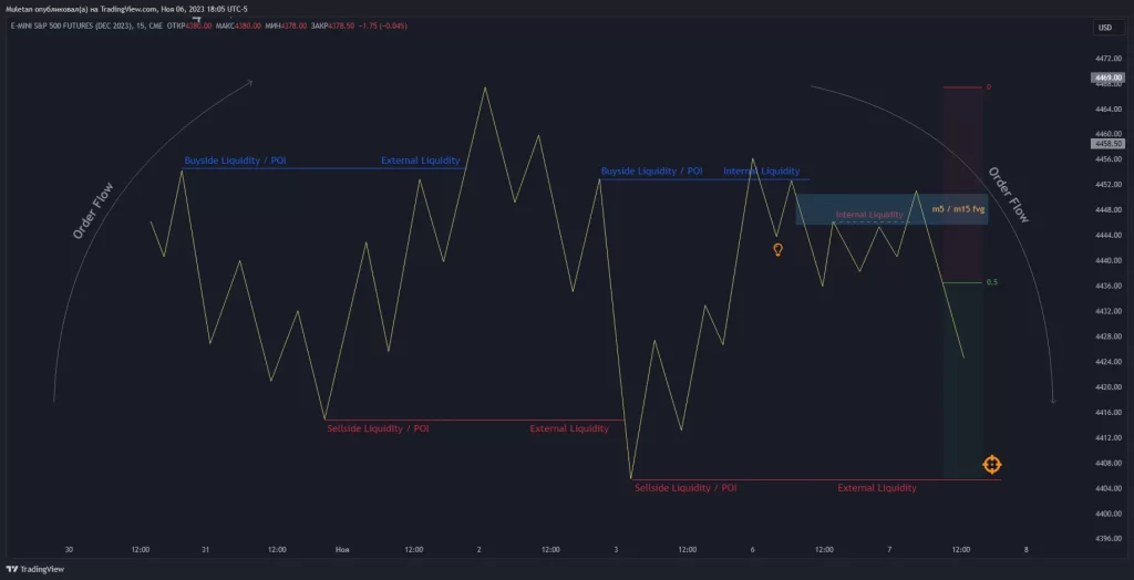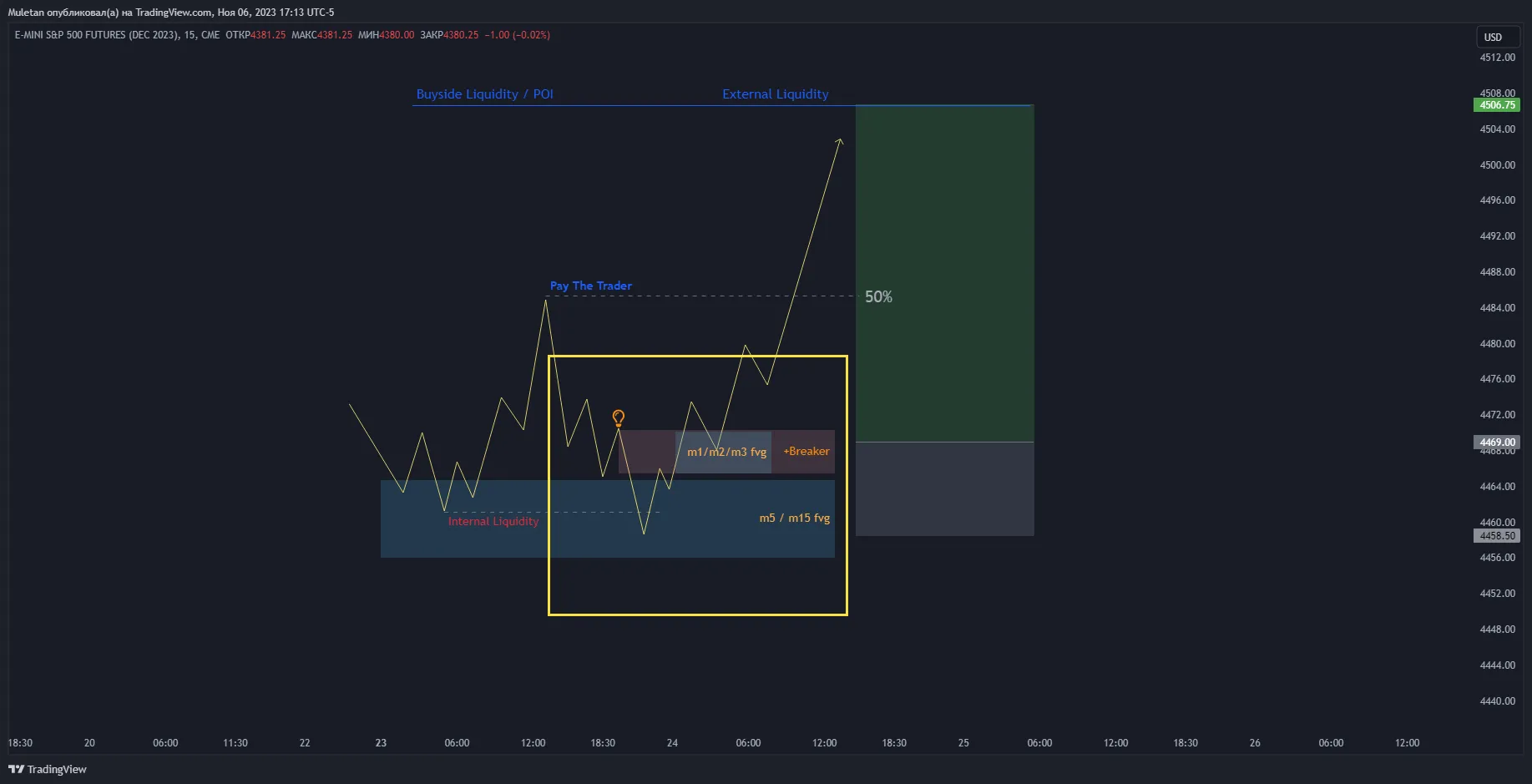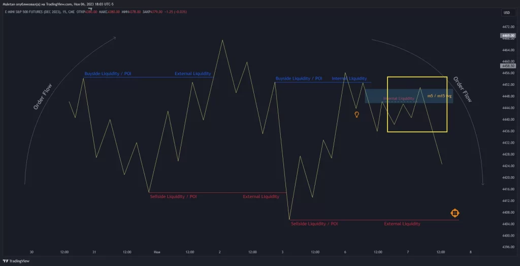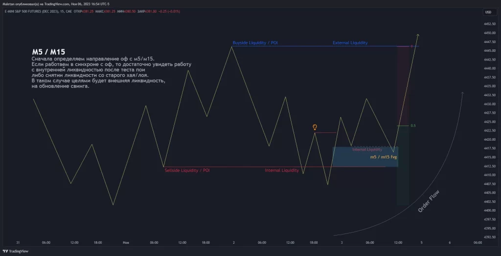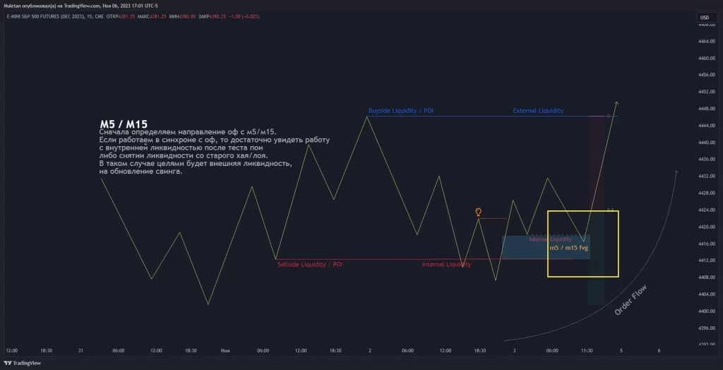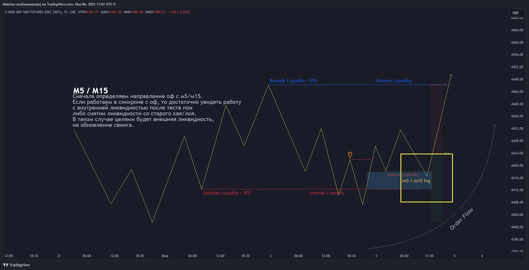 - после захвата внутренней ликвидности тестируется м5/м15 имбаланс;